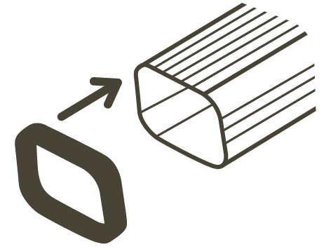 Carefully start on a corner and place the cap around the outside of the downspout, fitting the grooves around the edge.
